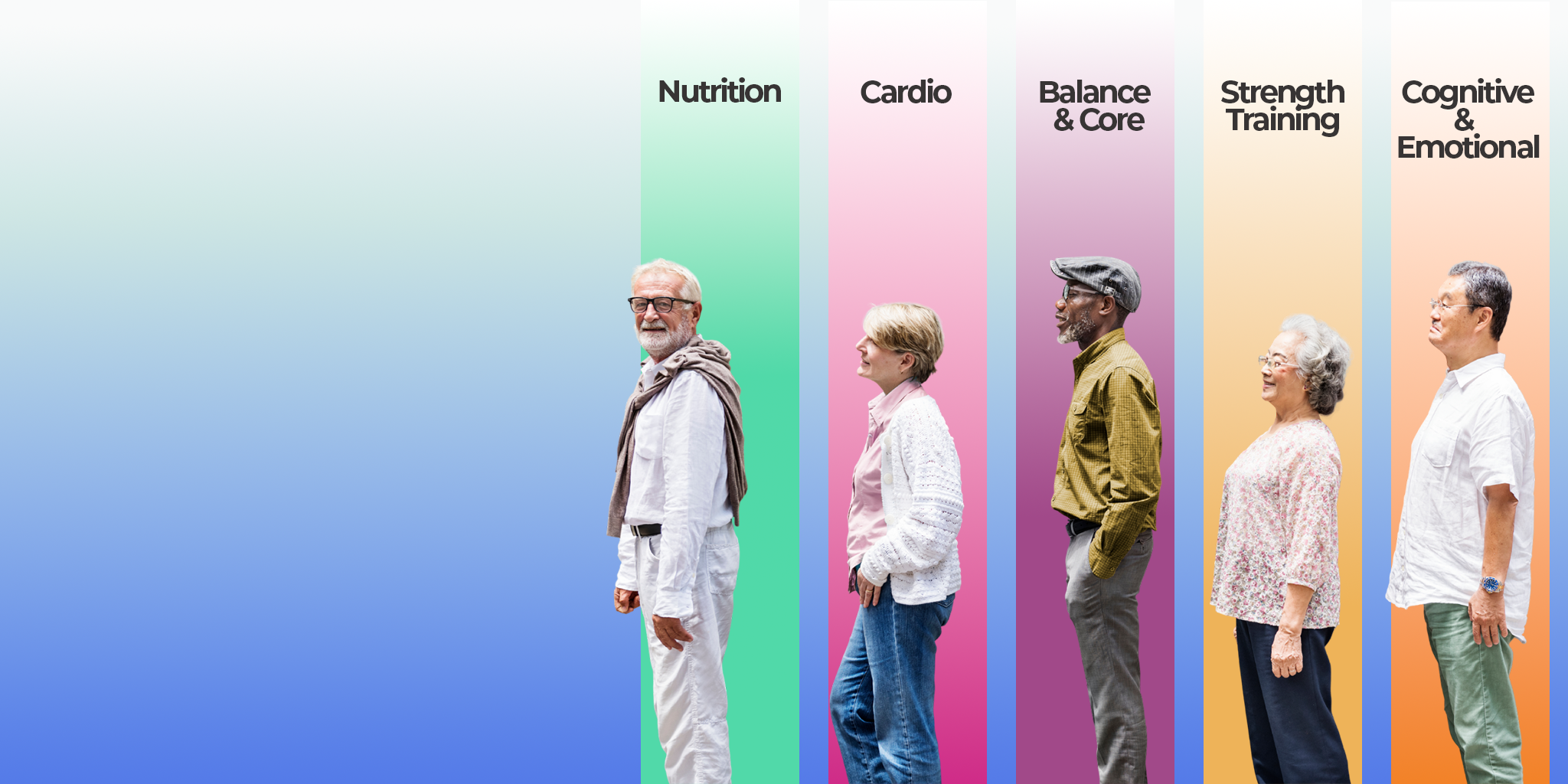 Here at Ageless Conversations, we’ve organized healthy aging around five essential pillars that keep our bodies and minds working together in homeostatic harmony (that's a ten-dollar phrase). Basically, we’ve put together a lifestyle foundation to help us all move better, think clearer, and live more fully. Our approach is grounded in research, shaped by lived experience, and designed for real people, with no extremes or fads. We don’t want healthy aging to be overwhelming or too hard, so we’ve assembled simple, practical guidelines and tools that we can adapt to our own needs. No fuss, no muss.